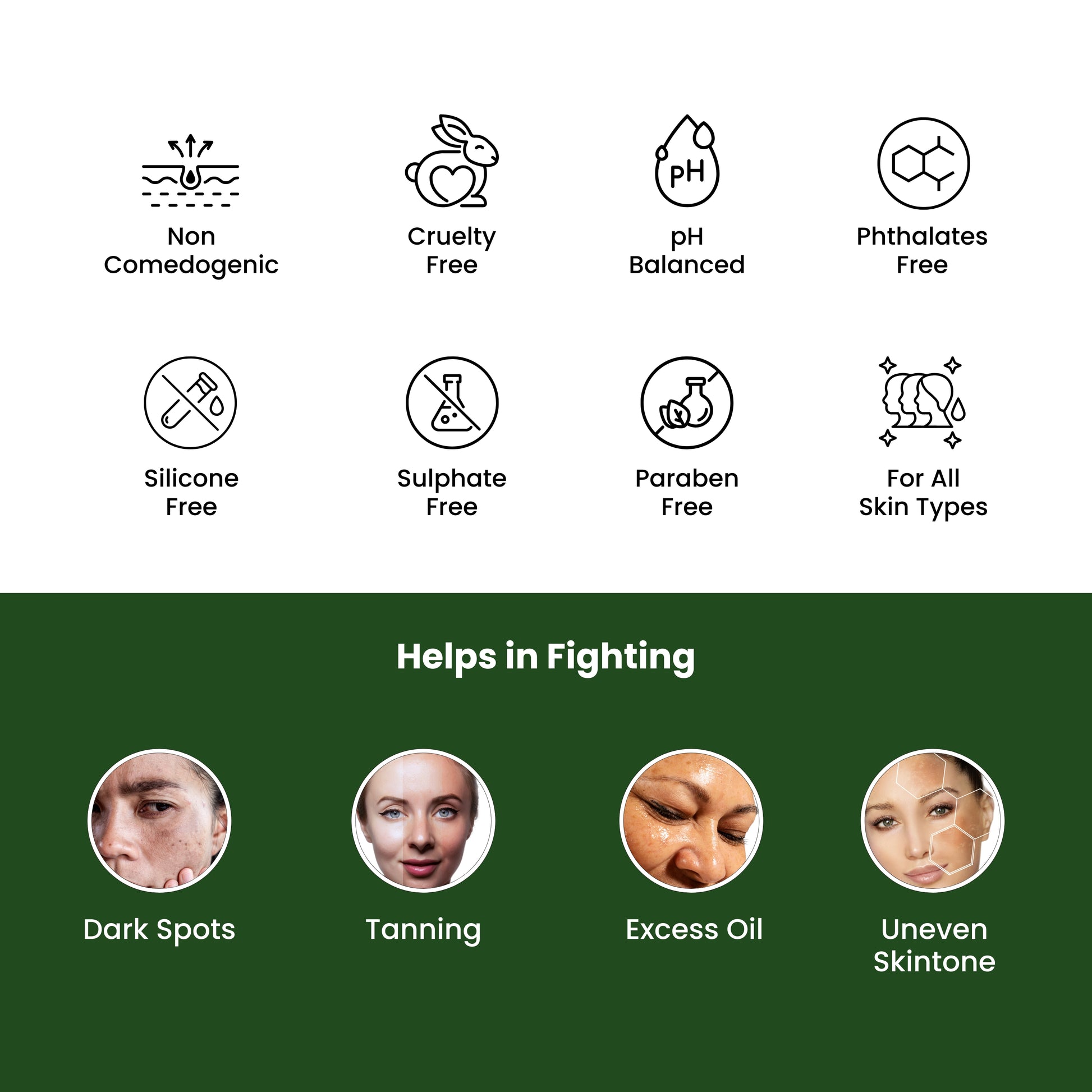 - Tan Reduction: Helps reduce skin tan, revealing a brighter complexion.